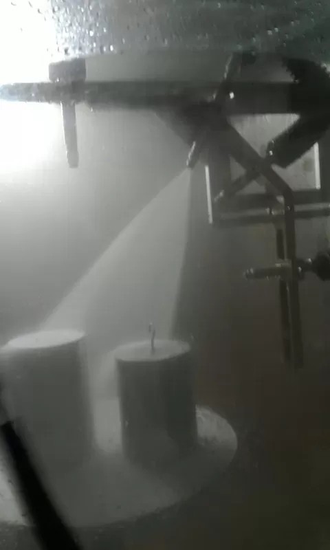 この装置は、加熱水槽、高圧プランジャーポンプ、高圧ソレノイドバルブ、ファンノズル、ターンテーブルなどで構成されています。まず、貯水タンク内の水を必要な温度に加熱し、次に、サンプルをターンテーブルに取り付け、ノズルの位置を調整し、次に、試験装置の保護ドアを閉じ、すべての試験に必要なパラメータを設定し、最後に、試験を開始します。試験中、4つのノズルが順番に30秒間噴霧します。